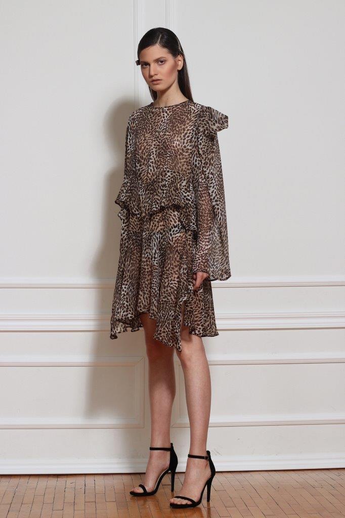 Ramena na odelima su oversize, struk je blago naglasen a izrez dubok kako bi masculine formi vratio ženstveniji look. Egzotičcni leopard print na svilenom muslinu doprineo je da playfull haljine sa dekonstruisanim rukavima dobiju luksuzniji izgled. Trench i pantalone od lakirane kože unose dozu potrebnog seksipila dok su zlatne drapirane haljine idealne za večernje izlaske.