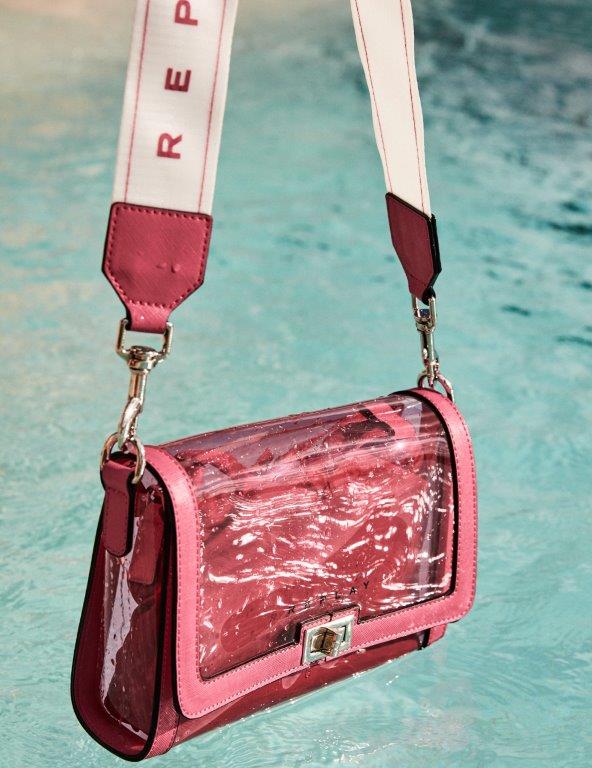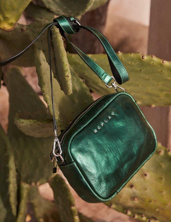 Nova Replay kolekcija ženskih torbi je unapređena korišćenjem inovativnih detalja, oblika i boja. Novi metalni logo je svetliji i savremenijeg dizajna, a sitne nitne zamenjuju cirkone kreirajući upečatljivi efekat veza.