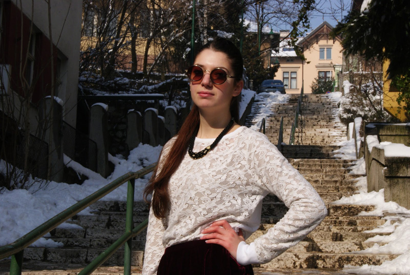 Lejla nosiKaput: MangoMajica: OrsaySuknja: RomweOgrlica: DIYNaočare: RomweTorba: New YorkerLadybug4Sunflower by Lejla