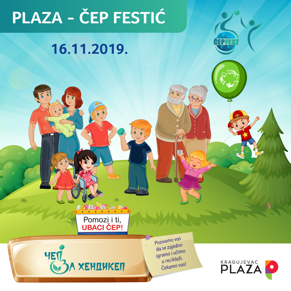 Draga deco i roditelji, pozivamo vas na četvrti inkluzivni festival za celu porodicu "Čep Festić" koji će se, u saradnji sa udruženjem “Čep za hendikep’’, održati u Šoping centru Kragujevac Plaza 16.novembra u periodu od 14h -16h.