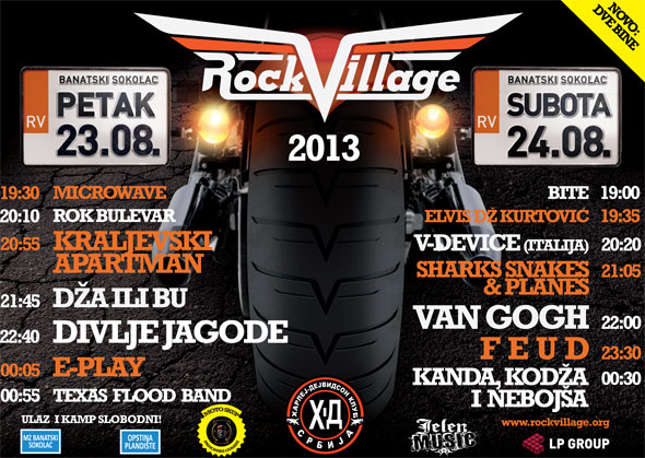 Rock Village 2013 biće održan u petak i subotu, 23 i 24. avgusta na dve bine: Glavna bina (main stage) i Sound system bina.