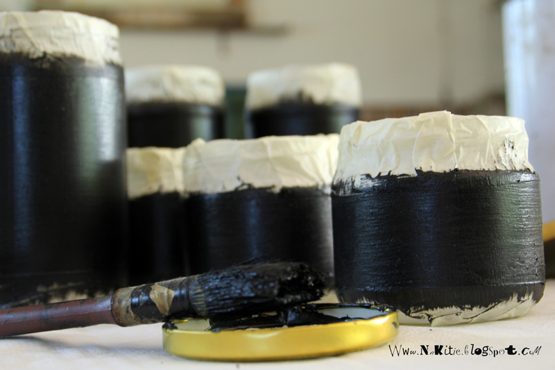 E sad, iako sretna zbog silnih miomirisnih kesica koje su se našle u mojim rukama nisam ih mogla ostaviti da se guše u plastici pa sam odlučila fino sredit staklenke i stavit ih u njih! Uz malu pomoć trake za pituravanje, kista i home made piture za pisanje kredom, akrilnog spreja i par permanentnih flomića dobila sam vrlo slatku ambalažu!